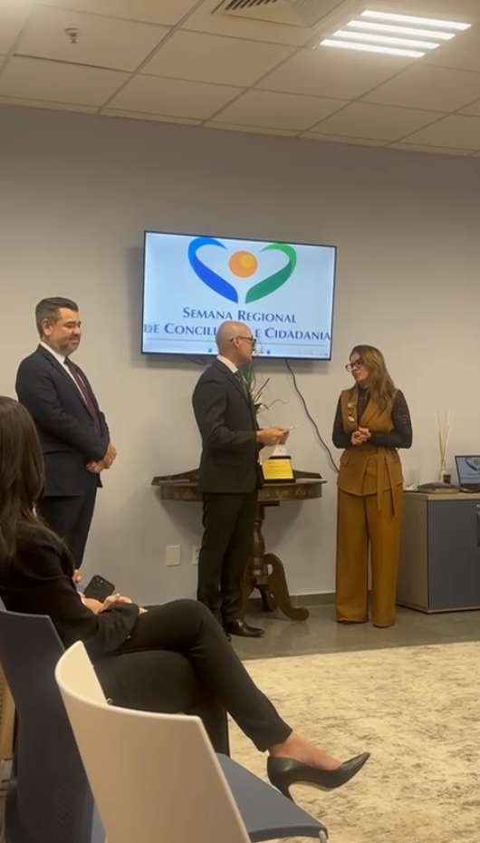 A Justiça Federal do Rio Grande do Norte realizou, no último dia 9 de abril, a cerimônia de entrega da comenda “Amigo do CEJUSC”. A premiação integra a programação da IV Semana Regional de Conciliação e Cidadania e da II Semana Nacional de Saúde, realizadas entre os dias 6 e 10 de abril. Instituído em 2025 pelo TRF5, a comenda reconhece pessoas e instituições que contribuem para o fortalecimento da cultura da conciliação, com atuação na ediação de conflitos e na construção de soluções consensuais.